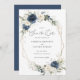 Floral Blue Greenery Gold Wedding Save The Date Invitation