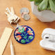 FLORAL , blue pink green Key Ring