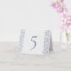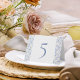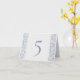 Chic, fresh and playful. These gorgeous folded cards feature custom wedding table numbers with floral blue and white stripes along the side, both back and front. There is a area for custom text at the back or leave the text box empty if blank back is preferred.