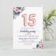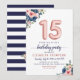 Floral Blush Navy Rose Gold Balloons 15th Birthday Invitation