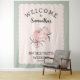 personalized retro bachelorette party tapestry in in blush pink with a flowers design is perfect as a bachelorette party photo backdrop. Celebrate your bridal shower in style with the perfect floral theme in bold pink, the perfect theme for the nostalgic vintage and romantic bride and her bridesmaids.