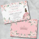Tiara Watercolor Floral Pink Quinceañera Invitation. This unique horizontal design features adorable watercolor blush pink roses and flowers mixed with green leaves and foliage, creating a whimsical yet elegant theme for your Quinceañera celebration. A variety of pink and green hues add a soft and dreamy feel to the invitation. The design combines classic serif fonts with beautiful script typography for a look that’s both fun and sophisticated. A pink sparkle princess tiara adorns the top of the invitation, with more flowers and sparkling details on the back, including a lovely girl in a pink sparkling dress. You can customise the font colours to make it more vibrant or colourful, and even change the background and back of the invitation to suit your personal style. Available as a printed invitation, or as a downloadable digital invite that you can send via email or have printed locally!