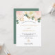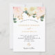 A chic white background. Decorated with watercolored flowers, florals pink roses, white orchids and a yellow gerbera, eucalyptus greenery and faux gold sprigs. Personalise and add your names and wedding details. Black and golden coloured letters.