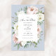 Floral Blush White Peony Frame Elegant Wedding Save the Date Card. Romantic Dusty Blue Blush Wedding Save the Date Invitation Template