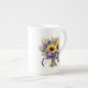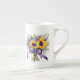 This lovely bone China mug is shown in white with a pretty floral sunflowers and lavender watercolor print.