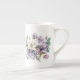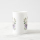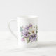 This lovely bone China mug is shown in white with a pretty floral watercolor print in colours of purple.