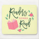 Perfect for bookworms, this mousepad features the words "Readers Gonna Read" surrounded by an opened book, roses and leaves against a light yellow background.