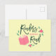 Great for book lovers, this lovely bookish postcard features the words "Readers Gonna Read" surrounded by an opened book, pink roses and green leaves against a yellow background.