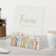 Express your gratitude with our Floral Books Favours tabletop sign from the "Wildflower and Books" collection. This sign features the elegant, handpainted watercolor illustrations of books and wildflowers, in soothing hues of pink, blue, green, and gold. Designed with a retro vintage typewriter font and a trendy gold script against an ivory backdrop, this sign adds a refined touch to your favour table, beautifully coordinating with the overall theme of your bridal shower.