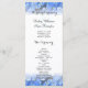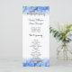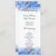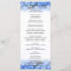 Blue floral tall wedding ceremony program. Customise both sides of this hydrangea border wedding card and list the order of the ceremony on one side and the family names and wedding party names on the back. Black text is in script and printed font styles and is easy to read. Affordable cards measure 4x9 inches.