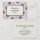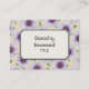 Lovely and personal business card, with design based on botanical photographic motives on front side, while rear side is plain text including your easily customisable contact information. This version shows sweet purple to blue Geraniums on a net of drawn tiny leaves.