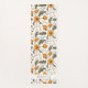 Floral Botanical Pattern Golden White Summer Custom Name Yoga Mat - two different designs for front and back:  White pattern and personalised with your name of choice on one side, pattern on green background on the other.