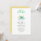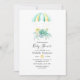 Whimsical ranunculus, lupins, peonies and succulents parachute bouquet baby shower invitation in pastel shades.