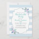 Elegant cute pastel watercolors flowers bouquet frame with pastel blue and white stripes, customisable bachelorette invitation template.