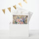 Bouquet peonies lavender flowers Rustic tan textured wall with a hand-painted watercolor “Party favour bags”