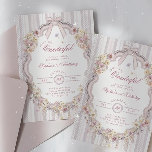 Elegant Floral Vintage Bow 1st BirthdayDesigned by Katsiaryna Lukyanava