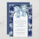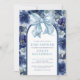 A cute and elegant floral blue bow baby shower theme featuring an adorable baby blue watercolor bow with an arch detail that now has a crisp white background for a clean and classic look. The back of the card features a navy blue background for a bold, modern touch, perfectly complementing the design.