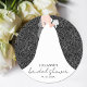 Elegant bridal shower stickers feature a beautiful bride in her wedding gown on a white rose pattern on a black background and your details in chic lettering - use for party favours or thank you stickers. Change to ANY COLOR background. MATCHING invitations and more in our store.