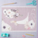 Lilac background with white anemones and pretty pink peonies, bride and faint swirls.