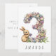 Make a little one's 3rd birthday extra special with this charming card, featuring a delicate watercolor illustration of the number 3, beautifully crafted from tiny, colourful pastel flowers. A cute bunny stands beside the number, playfully nibbling on the blossoms, adding a touch of sweetness and joy to the design. Whether you're a parent, grandparent, or family friend, this enchanting card is sure to bring a smile to both the little one and their loved ones.