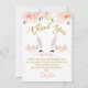 Cute bunny face birthday thank you card featuring a faux gold calligraphy heading. The design also includes three lovely pink floral arrangements and dots. This birthday thank you card is a lovely way to thank guests for coming to your little girl's bunny themed first birthday party.