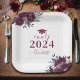 Floral Burgundy And Cream Graduation Class Of 2024 Paper Plate
