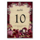 Floral Burgundy and Gold Alice in Worderland Table Number