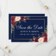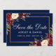 Watercolor Burgundy Marsala Floral Blue Gold Save The Date Engagement Card - Blue Back