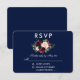 Floral Watercolor Burgundy Marsala Blue Wedding RSVP Card - White Text
