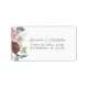 The left-hand border of this romantic modern wedding RSVP address label features a watercolor floral bouquet in shades of burgundy and blush pink. The customisable text combines modern burgundy handwriting script and charcoal grey sans serif font on a white background. Ideal for a fall or winter wedding.