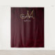 Floral Burgundy Gold Wedding Monogram Photo Booth Tapestry