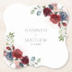 Floral Burgundy Script Chic Greenery Wedding Paper Coaster