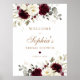 Floral Burgundy White Greenery Gold Bridal Shower Welcome Poster Sign. Elegant Floral White Red Burgundy Greenery Bridal Shower Welcome Sign