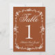 Floral Burnt Orange Old Money Wedding Table Number