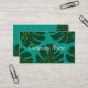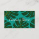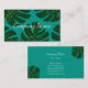 Floral business card template with tropical palm leafs. Great for travel company, health spa, beauty salon, florist, gardener or flower shop. Elegant script typography with modern vector art design. Customisable background colours ie turquoise blue with exotic green leaves. Professional company visit cards for store. Inspired by nature; Monstera Deliciosa.