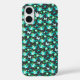 Pretty flowers butterflies and hearts in aqua green and jade patterned iphone on a dark slate grey background. Uniquely designed pattern by Sarah Trett.