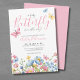 Whimsical Floral Pink Girl A Little Butterfly Baby Shower Invitation. An adorable watercolor vibrant flower garden sets the scene for this 'A Little Butterfly Is On The Way' baby shower party theme. A simple, but whimsical look with pink, blue, yellow, and green floral and butterfly accents with hints of dark grey. A mix of modern fonts and a beautiful script typography make this both elegant and fun. You can change out all of the font colours to make it more gender neutral or for a boy. You can also change the back colour to anything you want.