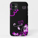 Pretty and elegant iPhone 5 cases that features a pink and purple flower and butterfly design on a black background.