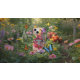 A vibrant phone case featuring a large, stylised butterfly in shades of pink and white, set against a backdrop of colourful flowers. The design includes various blooms in hues of purple, yellow, and pink, creating a lively and cheerful look.