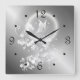 Floral Butterfly Silver Numbers Square Wall Clock