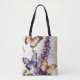 Step into a world of elegance and charm with our exquisite tote bag adorned with vibrant purple butterflies and delicate lilacs. This captivating accessory is more than just a bag—it's a statement of style and sophistication.