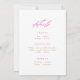 A colourful invitation for a Moroccan bachelorette weekend featuring a watercolor illustration of a camel with floral load and "bachelorette weekend" in fuchsia pink modern script font. Edit the itinerary for the weekend on the reverse.