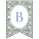 Printed on high-quality cardstock with pre-cut swallowtail flags — simply string together and display. A charming addition to any blue floral or vintage carriage–themed baby shower.