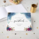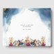 Unique Celestial themed guestbook with beautiful floral details and gorgeous watercolor stains and dainty stars creating a cosmic celestial background in both front and back. Modern hand written calligraphy details. Design in a beautiful blend of blue, navy, teal, turquoise, purple, fuchsia and gold hues. Coordinating guestbook sign available. Part of our "Mystic Garden Celestial" collection with a variety of coordinating products available.