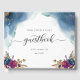 Floral Celestial, Starry Blue Teal and Purple Guest Book