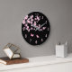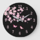 Pretty pink cherry blossom branch an two cute butterflies on a black background. Elegant botanical numbers clock.