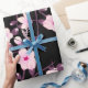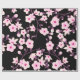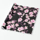 Floral Cherry Blossoms Pink Black Wrapping Paper