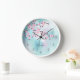 Floral Cherry Blossoms Pink Turquoise Monogram Clock