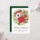 Send warm holiday wishes with this elegant Merry Christmas card featuring a beautiful festive floral arrangement. Adorned with poinsettias, pine cones, white anemones, and winter foliage, this design offers a sophisticated touch to your seasonal greetings. Customise with your family name for a truly personal touch.