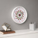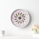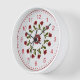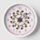 Floral Circle of Red Roses, White Lattice Pattern Wall Clock